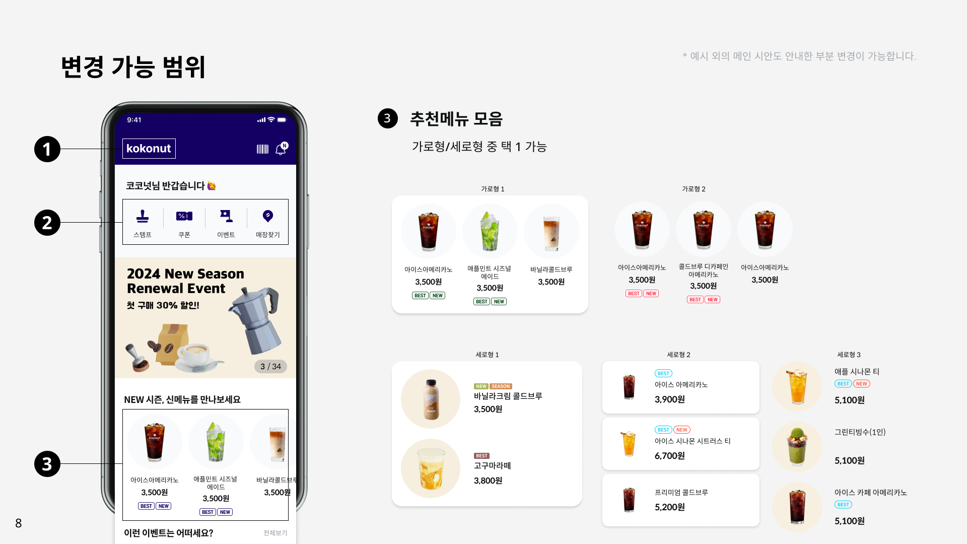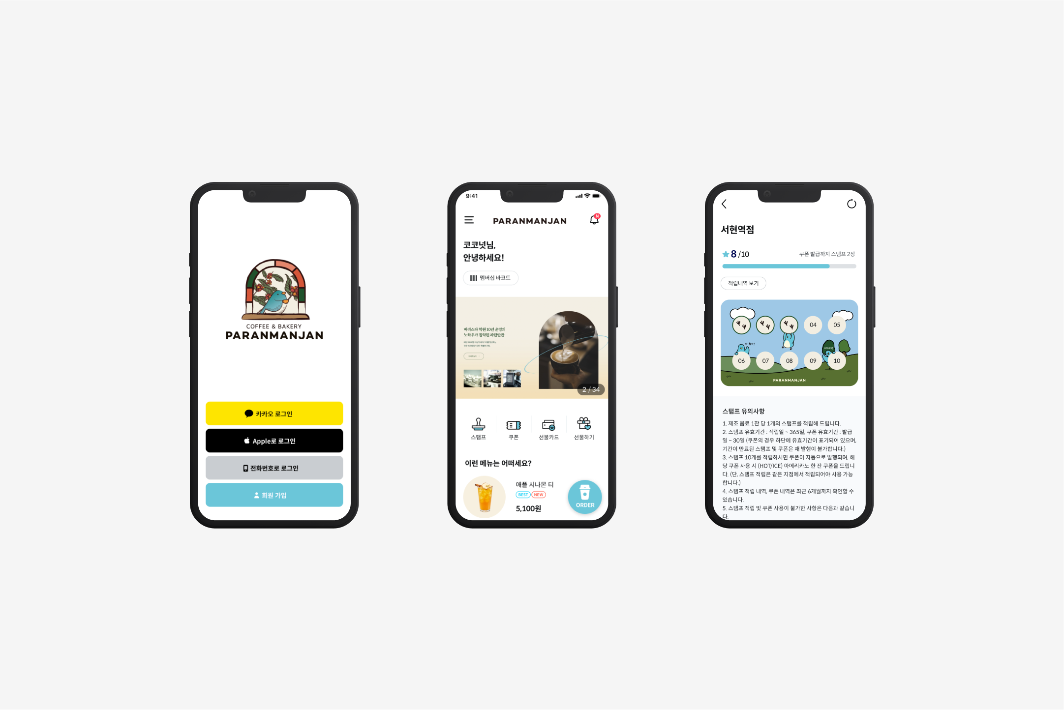 2) 상세페이지: 메인, 사이드 드로워, 스탬프 멤버십 페이지 디자인 (전체 중 기여도 20%)