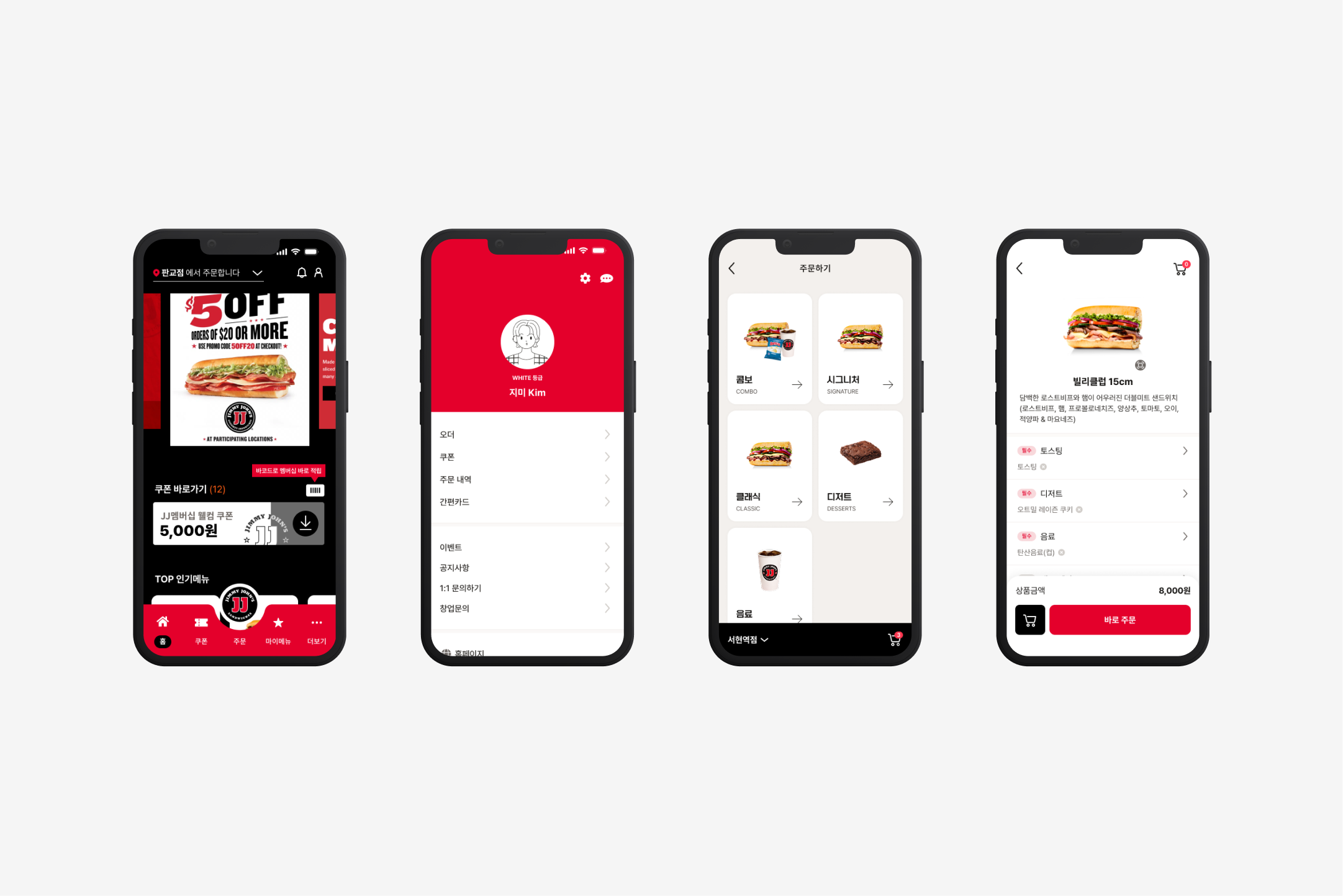 지미존스는 빠르고 신선함을 추구하는 활기찬 에너지, 영한 고객층, 정통 아메리칸 클래식 스타일의 선명함을 추구하는 브랜드입니다. 이러한 특징이 디자인에 잘 녹여지고 고객사가 원하는 필수 기능간의 조화로운 UX가 디자인의 메인 미션이었습니다. 볼드한 타이포그래피, 강한 대비의 레드 앤 블랙 컬러 시스템을 강조하고자 하였습니다.