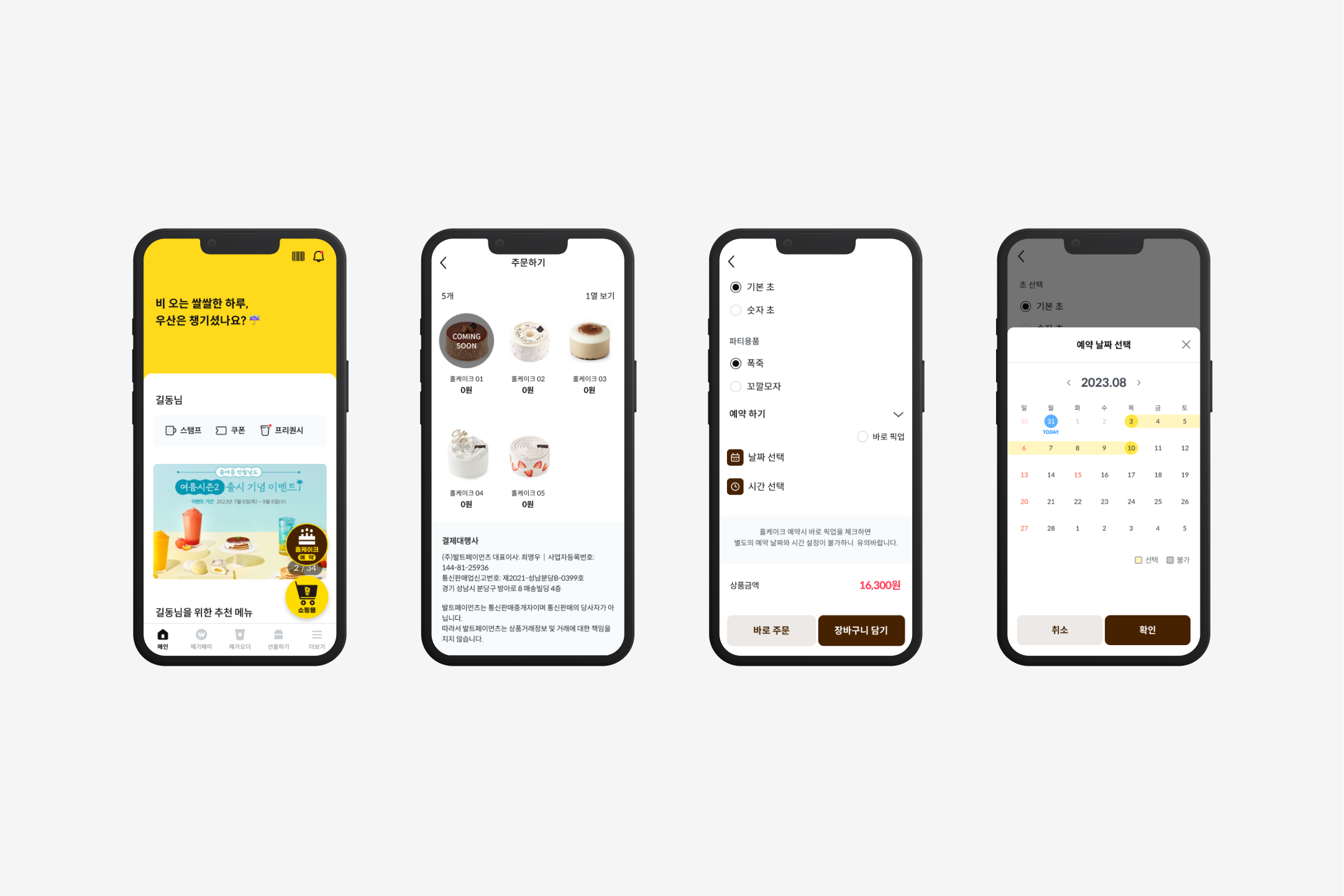 발트루스트의 가장 큰 고객사인 메가커피의 홀케이크 예약 서비스 디자인 전반을 담당했습니다. 자사 기획팀의 기획안을 골자로 UI디자인만을 진행했으며 앱과 연관해 기존의 에이전트 디자인도 수정했습니다. 새로운 예약 기능의 추가였기 때문에 담당 서비스 기획자와 기획을 미팅과 테스트를 통해 같이 수정해가면서 작업을 완수했습니다.